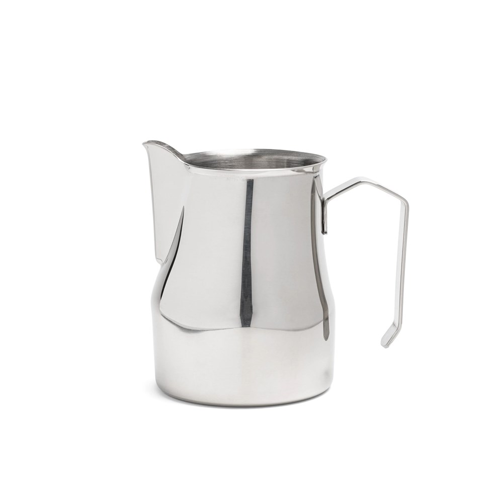 Our tested Italian milk frothing pitchers are available in classic silver, and in two sizes: 350 ml and 500 ml.
